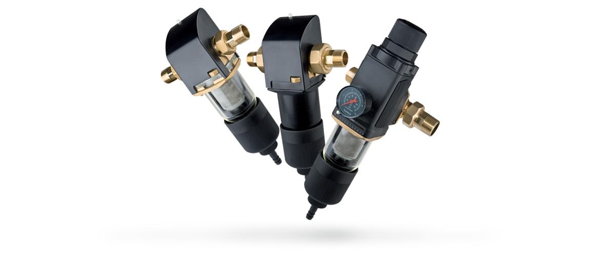 - HiDROFiL BP modelli per acqua fredda con riduttore di pressione integrato e manometro di controllo della pressione in uscita. La pressione viene regolata con la manopola della testa del filtro. Bicchiere trasparente.
